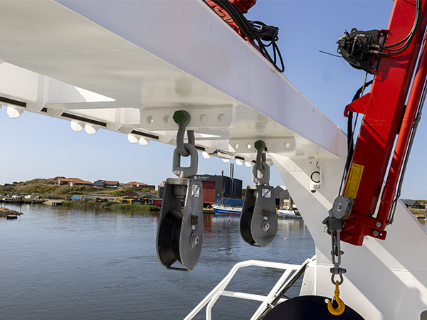 With AS Scan movable trawl block arrangement, each block can be moved transverse, remotely controlled from the wheelhouse. This gives the vessel an outstanding turning performance during towing. The rudder is one of the main drag sources contributing to the total ship resistance, but by adjusting the block position when you trawl you reduce the rudder drag and effectively reduce the operational costs.